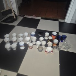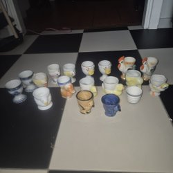 Retro stort parti äggkoppar, blandade motiv