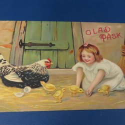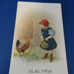 Påskkort med flicka och kycklingar ,GLAD PÅSK