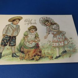 Påskkort med barn och tupp
