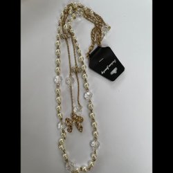 Långt dubbelt halsband med pärlor och klara pärlor