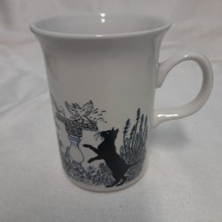 Mugg med katter och fåglar