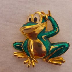 Söt grodbrosch i guld och grönt