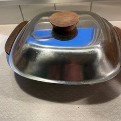 Serverings skål rostfri med lock teak handtag 23x23 cm