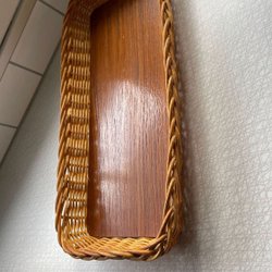 Bricka /Brödfat med Teak faner pilkant flätad 35x16 cm