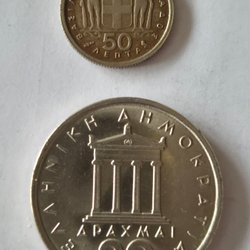 Grekland 50 lepta 1959, 20 drachma 1976