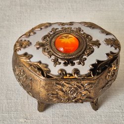 Charmigt litet skrin i metall.Tillverkat Japan.Smyckesskrin.