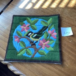 Väggbonad fint broderad med en fågel typ talgoxe?