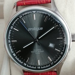 Prologue Quartz Herrklocka med Rött Läderarmband och Datumvisning