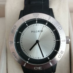 Pilgrim armbandsur, svart silikonrem, silverfärgad urtavla