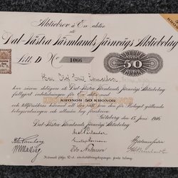 Aktiebrev Dal-Västra Värmlands Järnvägs Aktiebolag