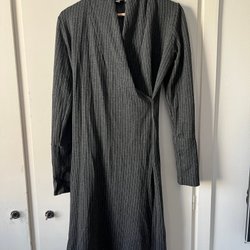 Camilla Thulin grå kritstrecksrandig omlottklänning, storlek 38