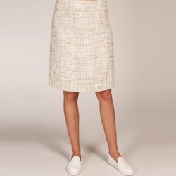 Suzanne Nilsson vit guldig beige boucle pennkjol, storlek L