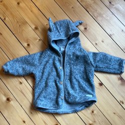 Grå liten jacka med ullblandning och träknappar strl 62