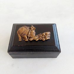 En liten smyckes- eller prydnadslåda, ibland kallad “elephant jewelry box”
