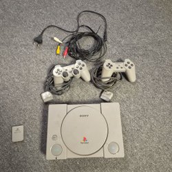 Sony PlayStation 1 SCPH-9002 konsol med två handkontroller och kablar