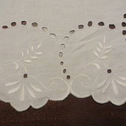 Oanvänd avlång duk med broderade rosor på rad