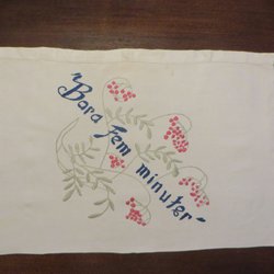 Gammalt broderat örngott " Bara fem minuter"