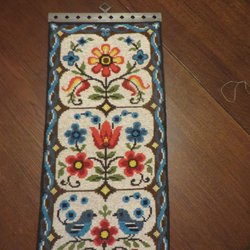Äldre broderad löpare med blommor av melerat pärlgarn