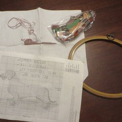 Sy färdigt den broderade tavlan med taxen