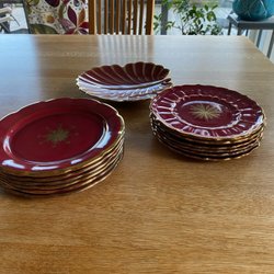 Gefle Rubin 12 st assietter och ett fat, Uppsala Ekeby,