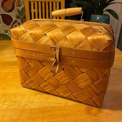 Flätad korgskrin korgväska korg spånkorg hantverk hemslöjd vitage lockkorg