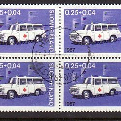 Obj. 3427, Stämplat 4-block Finlands Röda Kors 90 år