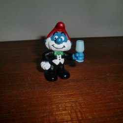 Smurf figur i smoking med glas
