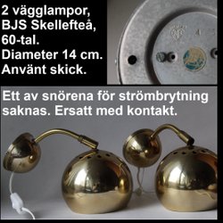 2 vägglampor, BJS, Skellefteå, 60-tal.