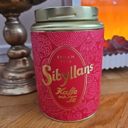 Röd Sibyllans Kaffe & Tehandel teburk kaffeburk jul julgranskulor advent