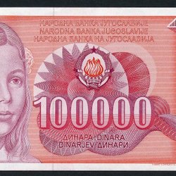 Jugoslavien 100000 Dinara sedel 1989 UNC
