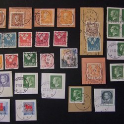 (F 284---) Tre kronor, fina stämplar som börjar på T