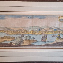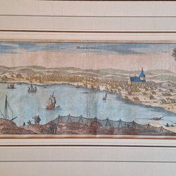 Handkolorerat Kopparstick "Hernösand". Ur Svecia Antiqva. 1730