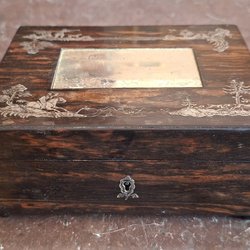 Empireskrin fanerat i ädelträ och inläggningar i silver. 1800 tal
