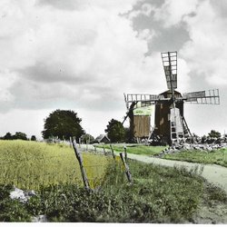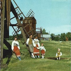 Öland. Väderkvarnar, postat -56, handkolorerat.