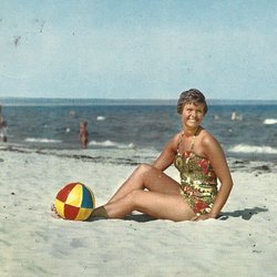 Öland. Badflicka på en strand. (Vilken strand är okänt)