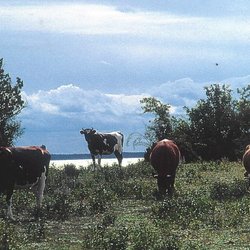 Öland. Kvigor betar vid Hagskog.