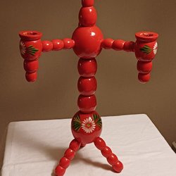 Jul Retro Vintage Röd Trä Ljusstake Julljusstake H. 33 cm