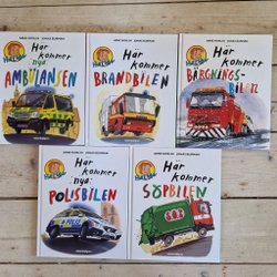 Fem stycken Halvan-böcker: Ambulansen, Brandbilen, Bärgningsbilen mm