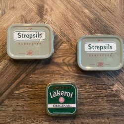 Tre äldre tablettaskar i plåt