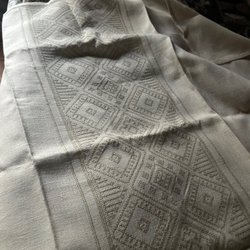 Stor handbroderad linneduk med broderat mittparti