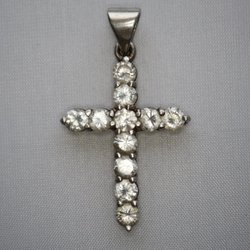 Antik Kors med zirkoner hänge till halsband silver stämplat 925