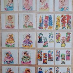 Tecknat barnmotiv på målad stramalj att brodera