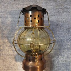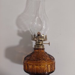 Fotogenlampa i färgat glas