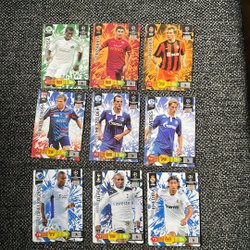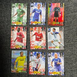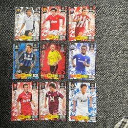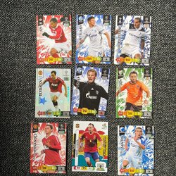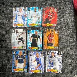 Samling av fotbolls- och Pokémonkort