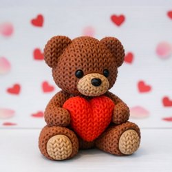 Liten nalle med hjärta 6cm virkat mönster