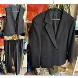 SIR, Kritstrecksrandig marinblå yllekostym i 3 delar, storlek 50