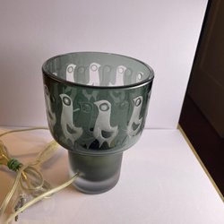 Bordslampa i glas med fågelmotiv