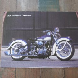 Ett vykort 21 x 15 cm med foto av H.D Knucklehead 1200cc 1946
