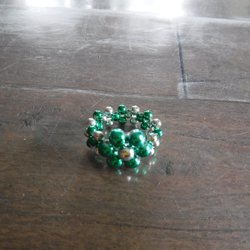 Grön/vit ring med blanka pärlor