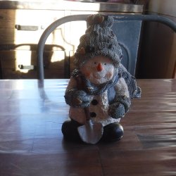 Snögubbe med skyffel